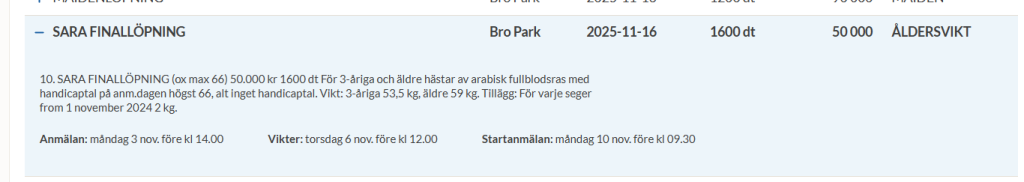 Om det är 3åringar får ni gärna även uppge när de planeras vara startklara eller när ni skulle vilja se löp för dessa.