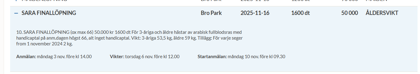 Om det är 3åringar får ni gärna även uppge när de planeras vara startklara eller när ni skulle vilja se löp för dessa.